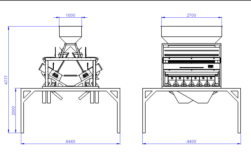 振動の振動の下のmahinceの上のfeedhopperの無選別の米はでありdisbutrited、nirセンサーおよび背景の版との観測区域にシュートに沿って滑る。光源の効果の下で、CCDセンサーは分類されるべき混合された米から混合ライトを反映する受け取る。輝度および色の変更は、システムを信号起こらせる、拒絶するドライブ電磁弁は部屋を逃走するために米を変色させ、よい米は受け入れる部屋をに落ち続ける。